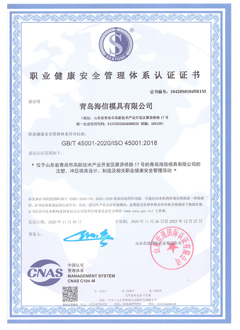 労働安全(quán)衛生マネジメントシステム認定証(zhèng)